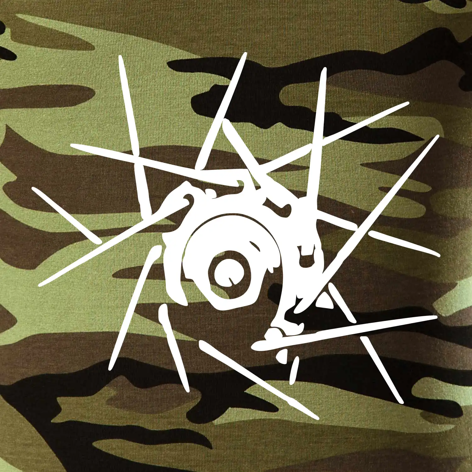 Tričko strednej gramáže vo farbách camouflage. Strih s bočnými švami. Lem priekrčníku z rebrového úpletu s prídavkom 5% elastanu. Vnútorná časť zadného priekrčníka začistená páskou vo farbe camouflage.