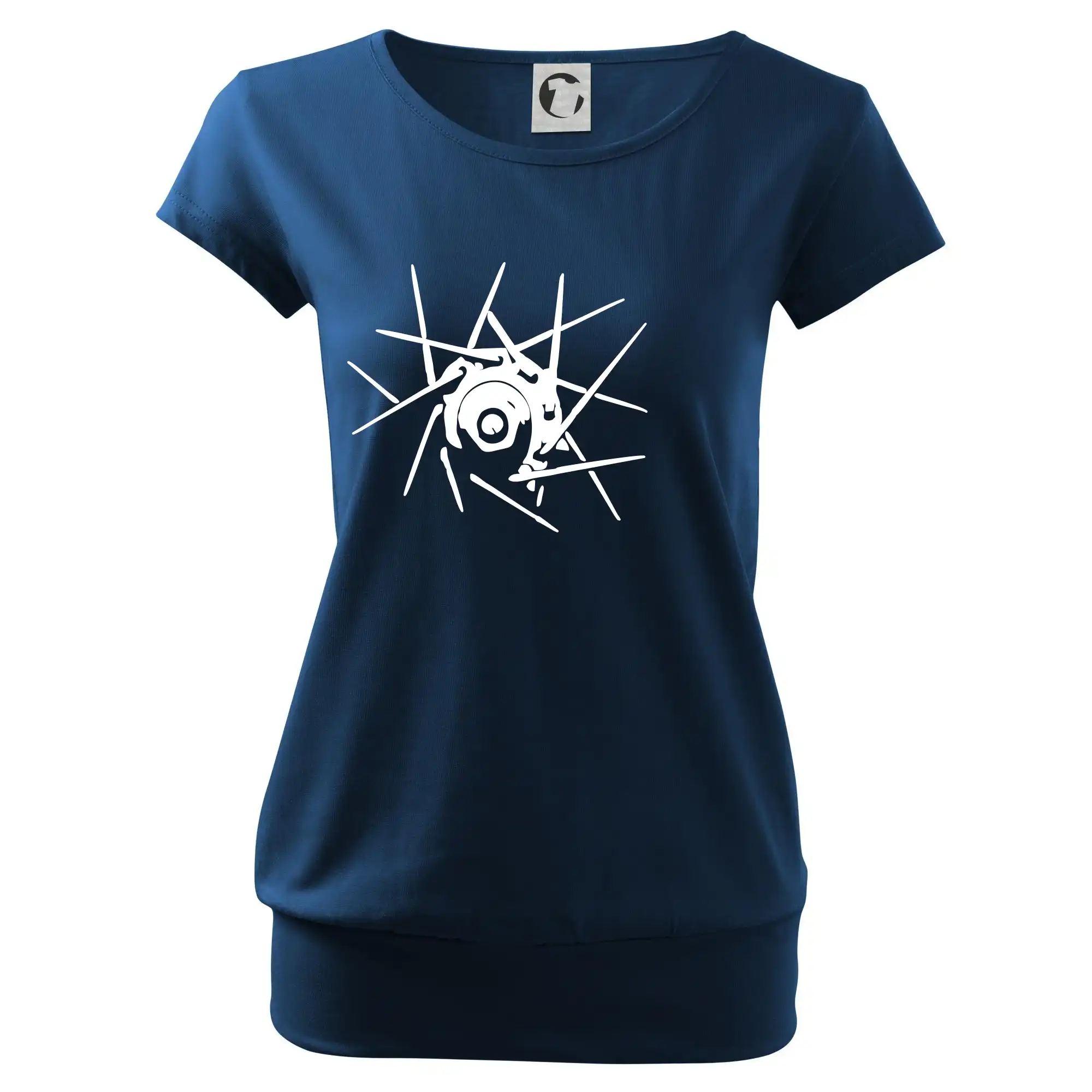 Trendové dámske tričko s veľmi krátkym rukávom, voľnejšieho strihu, v dolnom kraji všité do širokého lemu. Okrúhly priekrčník s úzkym lemom zo zhodného materiálu.