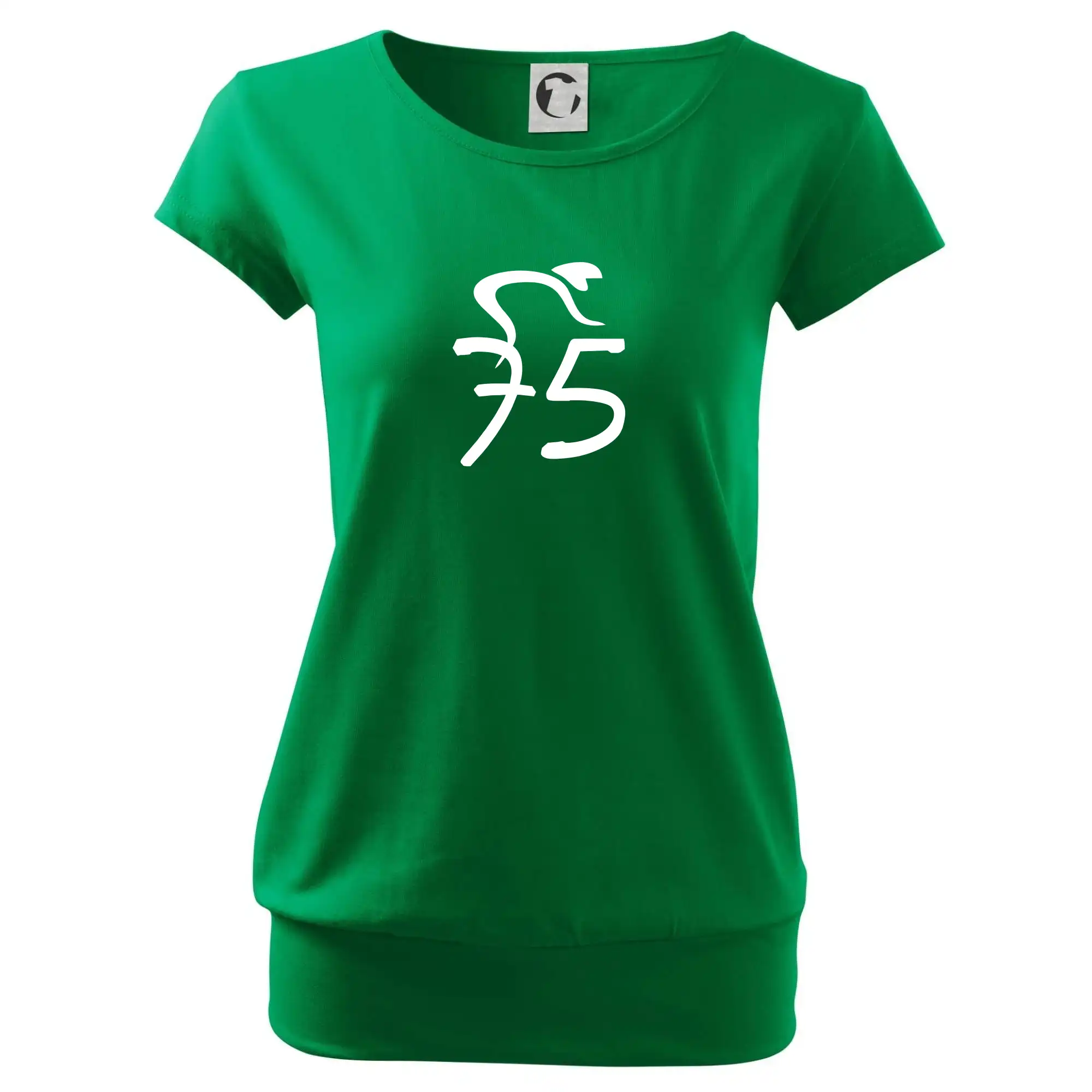 Trendové dámske tričko s veľmi krátkym rukávom, voľnejšieho strihu, v dolnom kraji všité do širokého lemu. Okrúhly priekrčník s úzkym lemom zo zhodného materiálu.