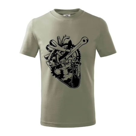 Detské tričko strednej gramáže s bočnými švami. Úzky priekrčník s prídavkom 5% elastanu. Vnútorná časť zadného priekrčníka začistená tkanou páskou. Spevnený ramenný šev.
