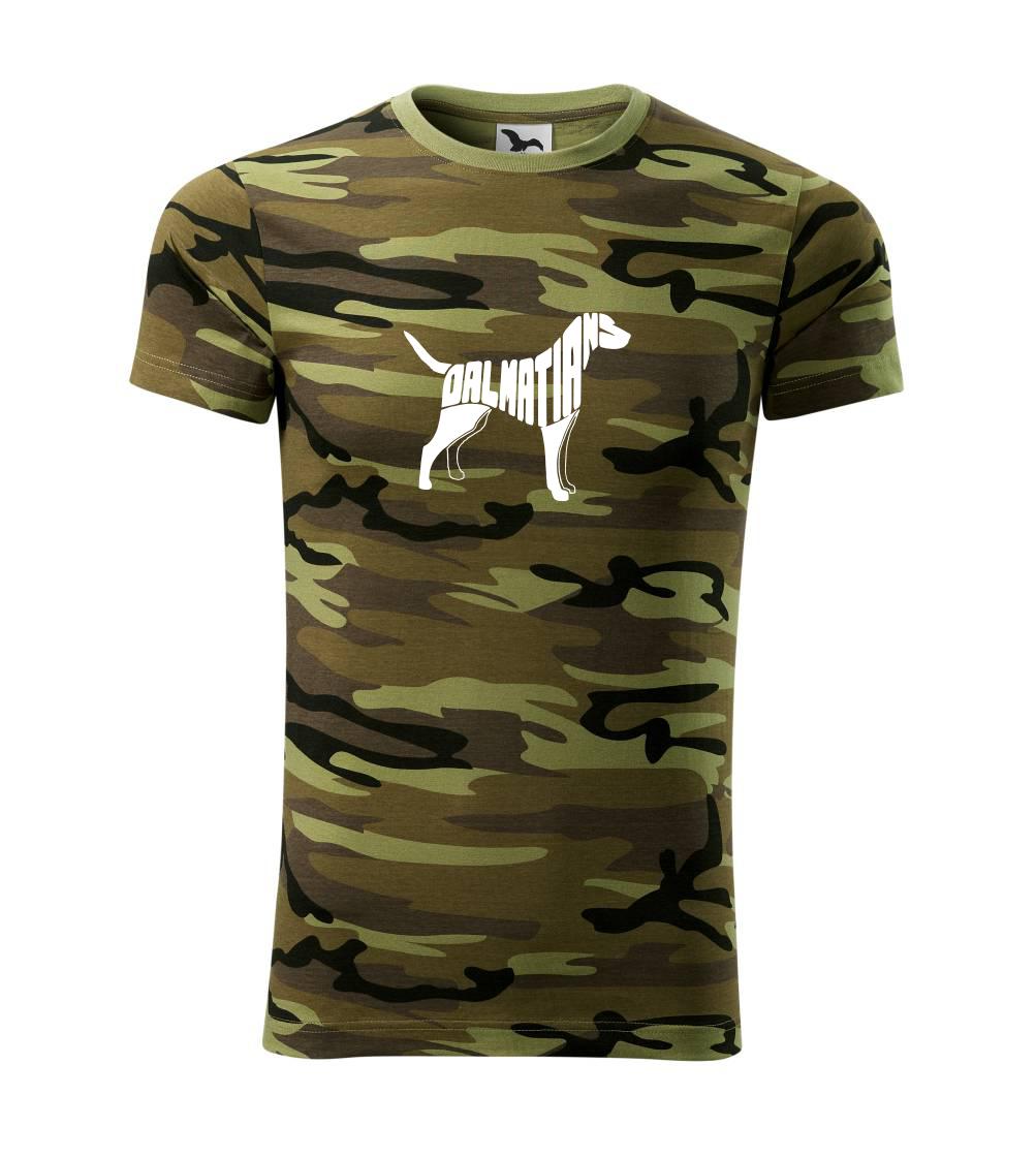 Tričko strednej gramáže vo farbách camouflage. Strih s bočnými švami. Lem priekrčníku z rebrového úpletu s prídavkom 5% elastanu. Vnútorná časť zadného priekrčníka začistená páskou vo farbe camouflage.