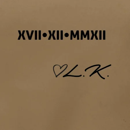 Datum vašeho výročí - seznámení, svatby, prvního rande, zkrátka cokoliv tam chcete mít, napíšeme na prso římskými číslicemi. Datum napište do poznámky běžný, na římské ho převedeme.