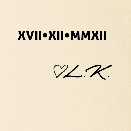 Datum vašeho výročí - seznámení, svatby, prvního rande, zkrátka cokoliv tam chcete mít, napíšeme na prso římskými číslicemi. Datum napište do poznámky běžný, na římské ho převedeme.
