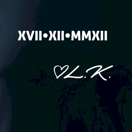 Datum vašeho výročí - seznámení, svatby, prvního rande, zkrátka cokoliv tam chcete mít, napíšeme na prso římskými číslicemi. Datum napište do poznámky běžný, na římské ho převedeme.