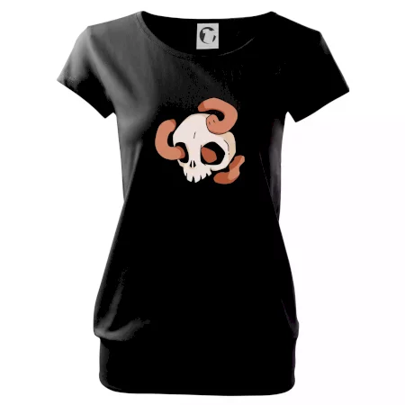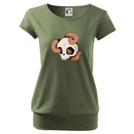 Trendové dámske tričko s veľmi krátkym rukávom, voľnejšieho strihu, v dolnom kraji všité do širokého lemu. Okrúhly priekrčník s úzkym lemom zo zhodného materiálu.