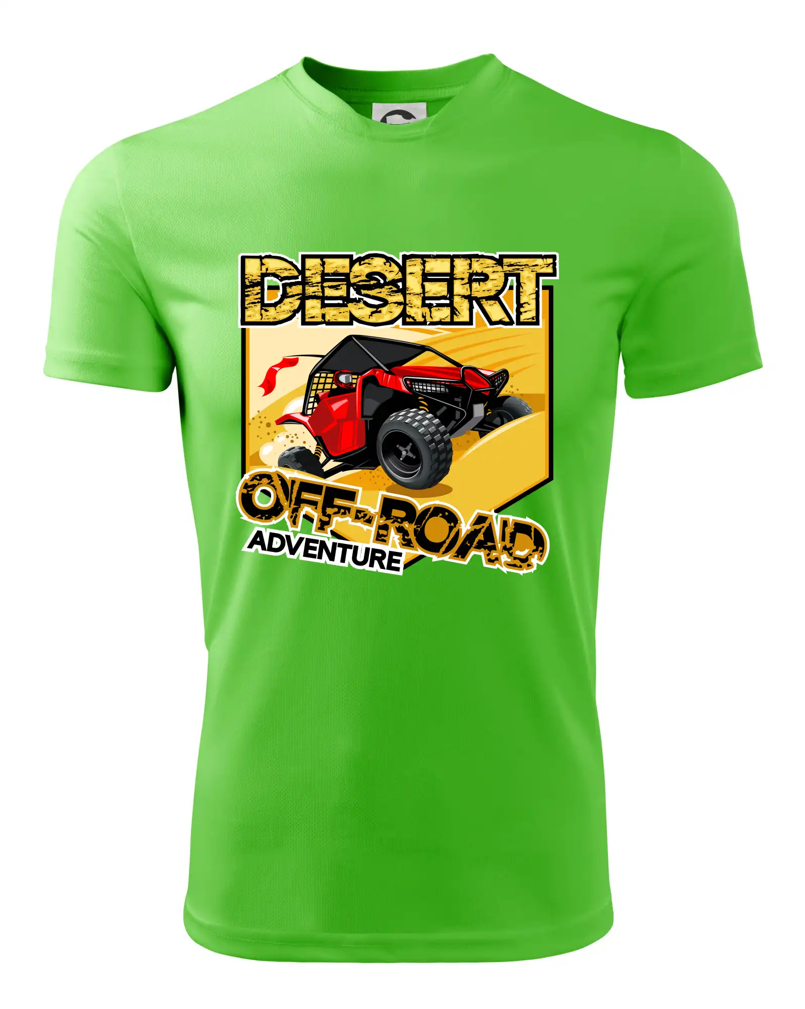 Tričko pre motoristu, na ktorom je červená buggy štvorkolka ATV. Motoristické tričko, kde je off road štvorkolka musí mať doma každý motorista. Tričko so štvorkolkou je vhodný darček pre motoristu, ktorý má rád adrenalín. Buggina na tričku je ako živá, proste parádne auto.
