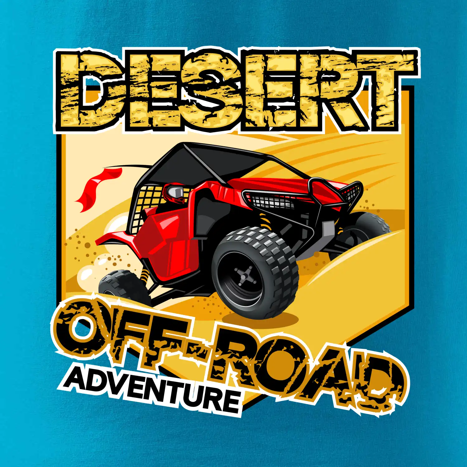 Tričko pre motoristu, na ktorom je červená buggy štvorkolka ATV. Motoristické tričko, kde je off road štvorkolka musí mať doma každý motorista. Tričko so štvorkolkou je vhodný darček pre motoristu, ktorý má rád adrenalín. Buggina na tričku je ako živá, proste parádne auto.
