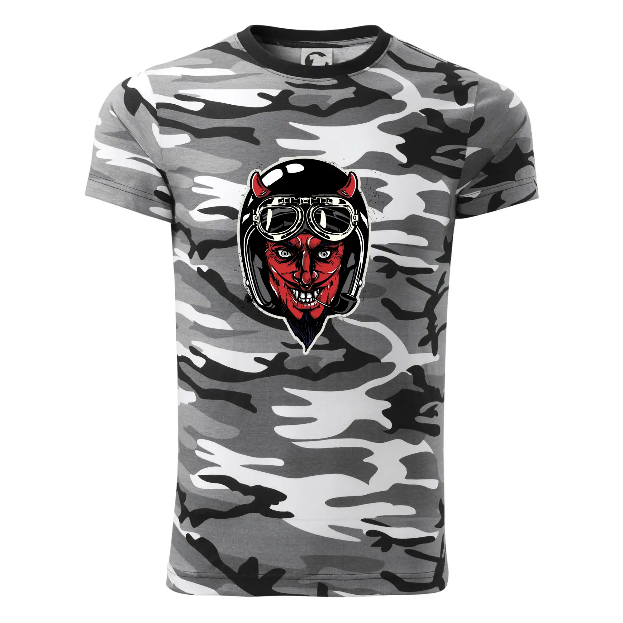 Tričko pre motorkára, na ktorom je diabol s helmou, je skvelý darček pre motorkára. Čierna motorkárska helma ochráni diabla aj Teba. Každý motorkár bude mať tričko s diablom rád, obzvlášť motorkár, ktorý má rohy.