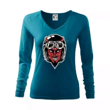 Tričko pre motorkára, na ktorom je diabol s helmou, je skvelý darček pre motorkára. Čierna motorkárska helma ochráni diabla aj Teba. Každý motorkár bude mať tričko s diablom rád, obzvlášť motorkár, ktorý má rohy.