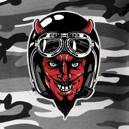 Tričko pre motorkára, na ktorom je diabol s helmou, je skvelý darček pre motorkára. Čierna motorkárska helma ochráni diabla aj Teba. Každý motorkár bude mať tričko s diablom rád, obzvlášť motorkár, ktorý má rohy.