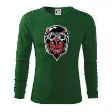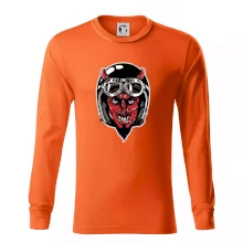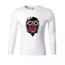 Tričko pre motorkára, na ktorom je diabol s helmou, je skvelý darček pre motorkára. Čierna motorkárska helma ochráni diabla aj Teba. Každý motorkár bude mať tričko s diablom rád, obzvlášť motorkár, ktorý má rohy.