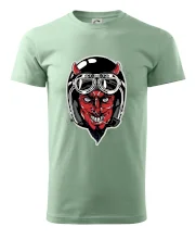 Tričko pre motorkára, na ktorom je diabol s helmou, je skvelý darček pre motorkára. Čierna motorkárska helma ochráni diabla aj Teba. Každý motorkár bude mať tričko s diablom rád, obzvlášť motorkár, ktorý má rohy.
