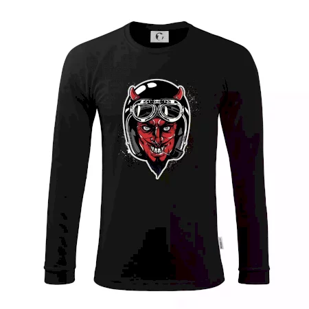 Tričko pre motorkára, na ktorom je diabol s helmou, je skvelý darček pre motorkára. Čierna motorkárska helma ochráni diabla aj Teba. Každý motorkár bude mať tričko s diablom rád, obzvlášť motorkár, ktorý má rohy.
