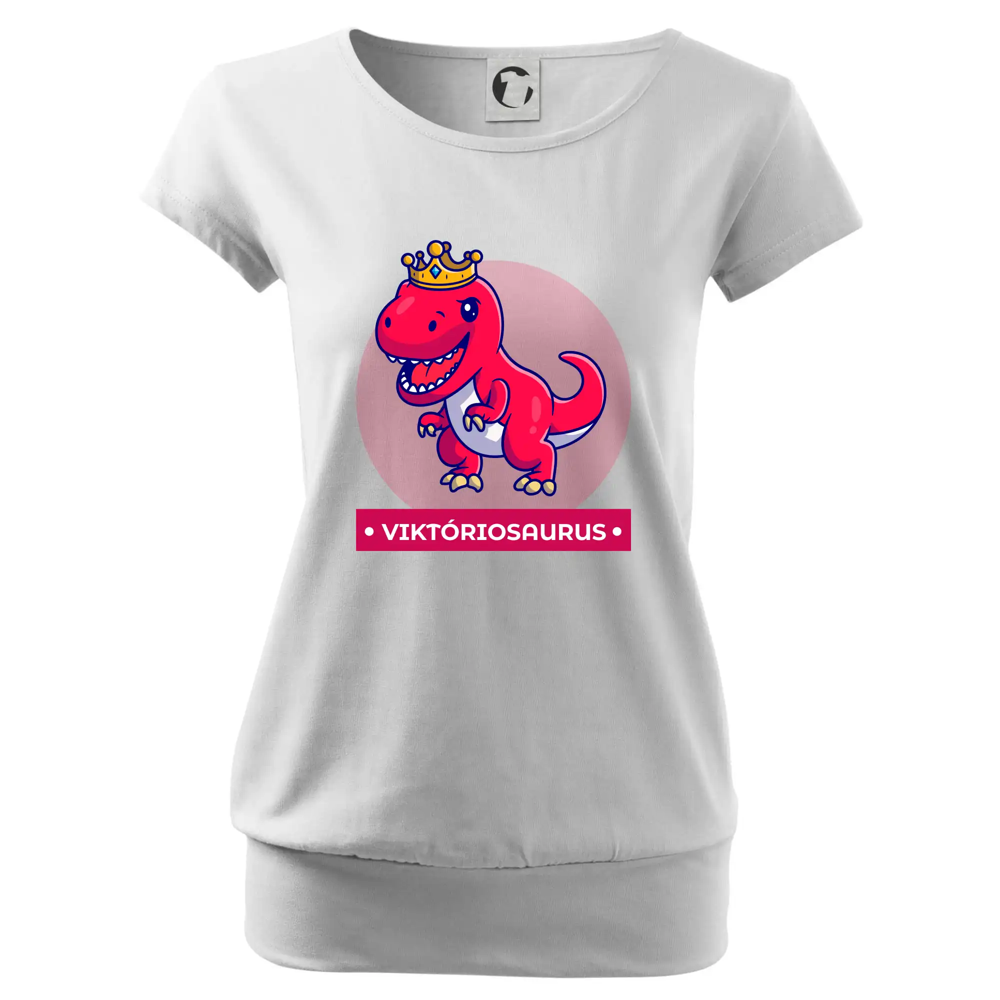 Trendové dámske tričko s veľmi krátkym rukávom, voľnejšieho strihu, v dolnom kraji všité do širokého lemu. Okrúhly priekrčník s úzkym lemom zo zhodného materiálu.