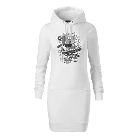 Dámske mikinové šaty MALFINI Snap 419 sú ideálnou voľbou pre ženy, ktoré hľadajú pohodlný a štýlový kúsok na voľný čas alebo každodenné nosenie. Ľahko vypasovaný strih s bočnými švami podčiarkuje ženskú siluetu, zatiaľ čo kapucňa s podšívkou a sťahovacou šnúrkou dodáva ležérny vzhľad. Šaty majú dĺžku nad kolená a sú vybavené našitým vreckom v štýle „klokanky“. Materiál je mäkký a príjemný na dotyk grâce à smesi bavlny a polyesteru s nepočesanou vnútornou stranou.