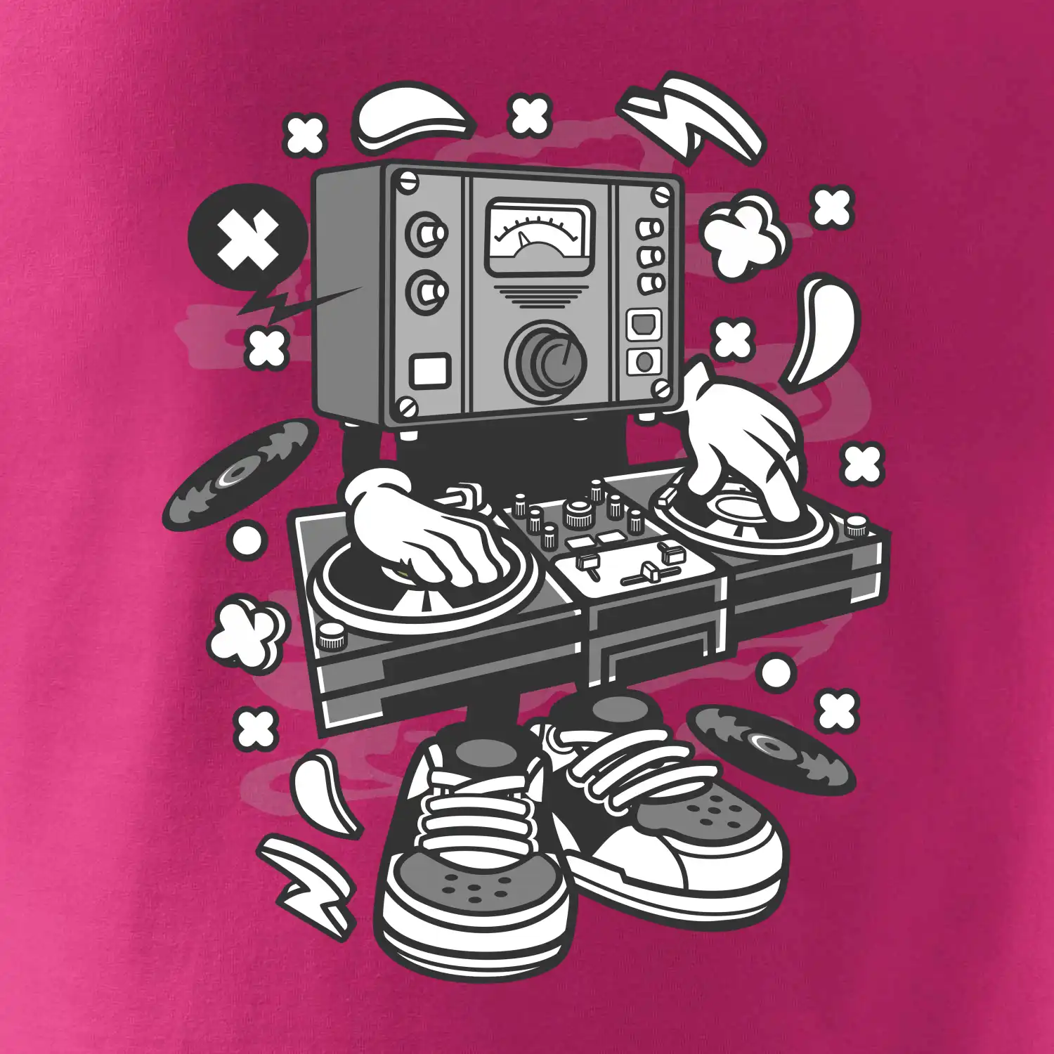 Tričko pre dídžejov, na ktorom je mixážny pult. Štýlový darček pre dídžeja. Rozbaľ to na diskotéke s dídžejským tričkom a hudba bude ešte lepšia ako predtým!