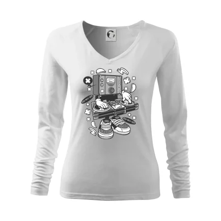 Tričko pre dídžejov, na ktorom je mixážny pult. Štýlový darček pre dídžeja. Rozbaľ to na diskotéke s dídžejským tričkom a hudba bude ešte lepšia ako predtým!