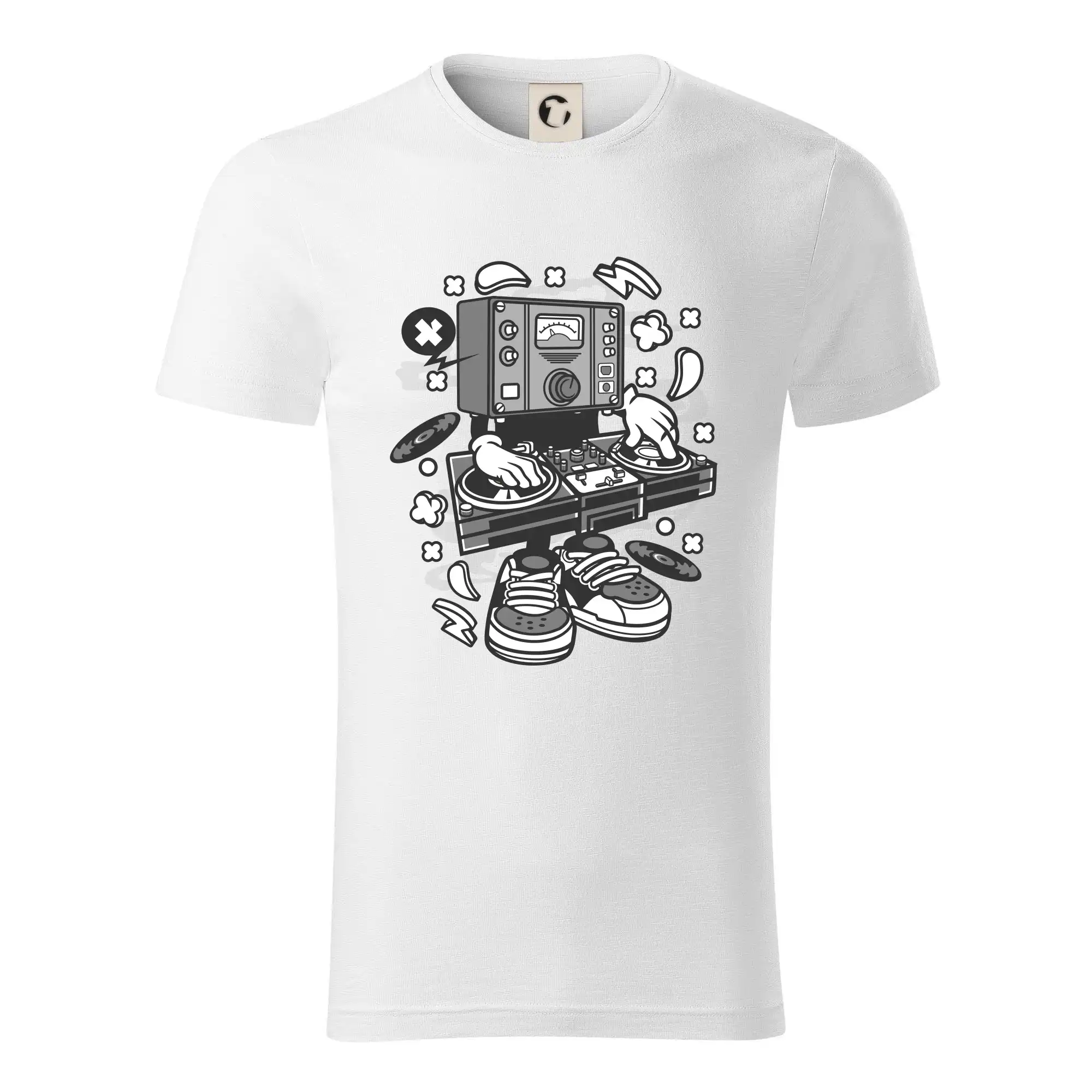 Tričko pre dídžejov, na ktorom je mixážny pult. Štýlový darček pre dídžeja. Rozbaľ to na diskotéke s dídžejským tričkom a hudba bude ešte lepšia ako predtým!