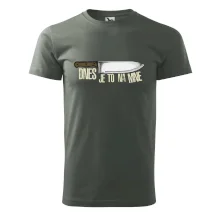 Tričko, na ktorom je nôž s nápisom Dnes je to na mne, by si mal zaobstarať každý milovník varenia či grilovania. Či už je to tričko pre kuchára alebo majstra grilu na záhrade, jedlo bude určite chutnejšie! Tričko je vhodný darček pre každého, komu grilovanie a varenie nie sú cudzie.