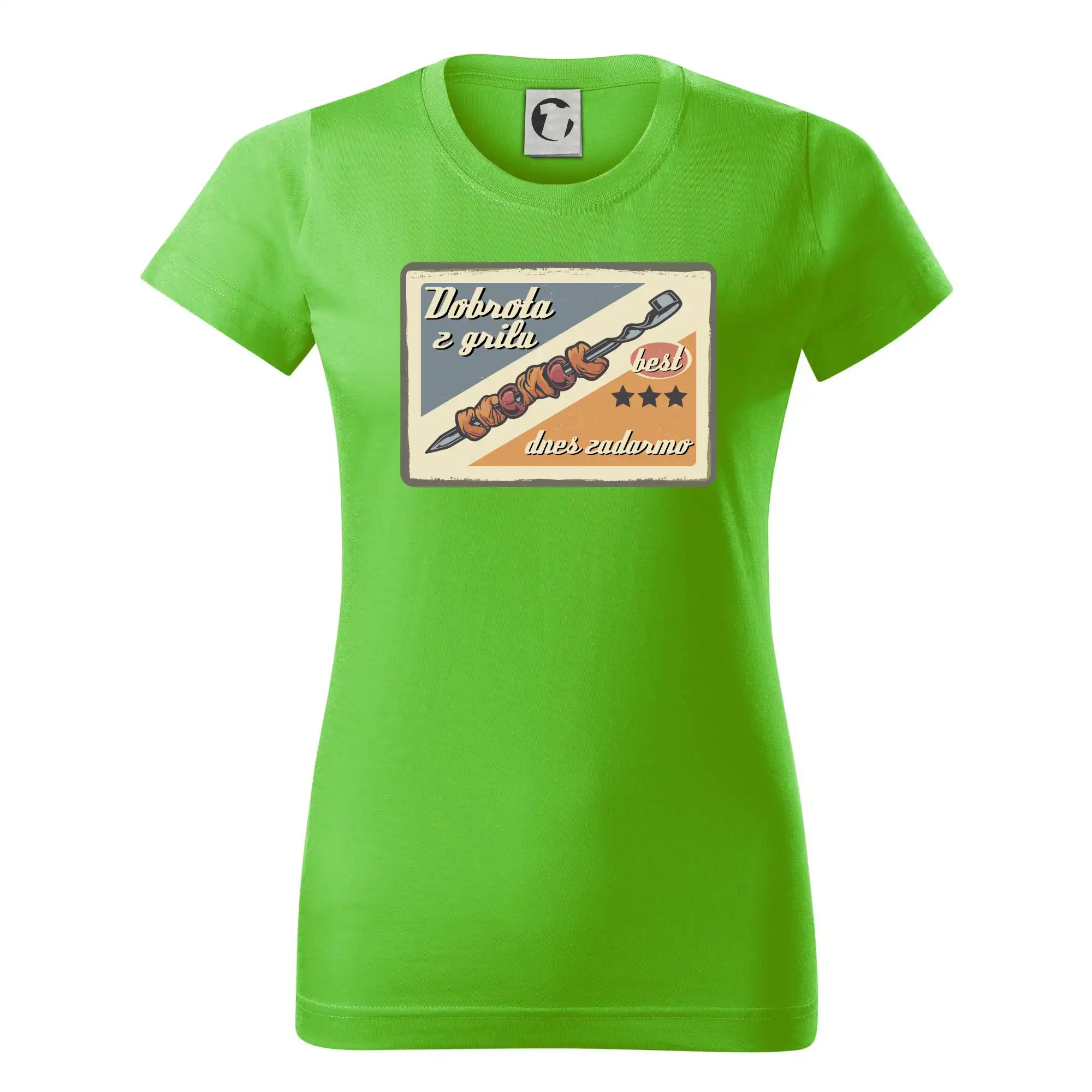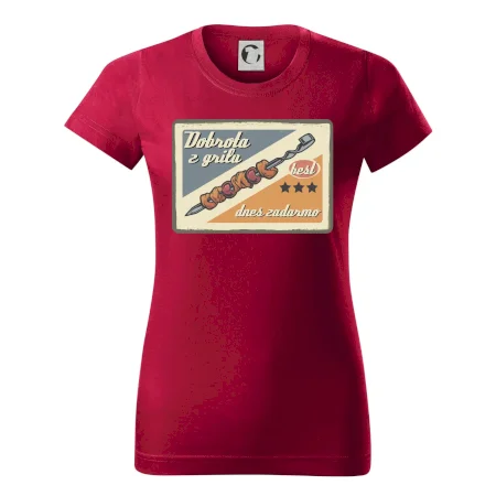 Tričko pre gurmána, ktorý má rád grilovanie, zdobí nápis "Dobrota z grilu, dnes zadarmo" a grilovaný mäsový špíz. Tričko pre kuchára by si mal zaobstarať každý, kto je pravý pán grilu.! Tričko s grilom je vhodný darček pre kuchárov na letné grilovanie na záhrade.