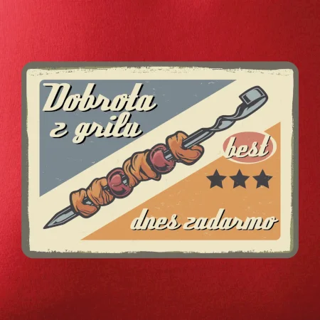 Tričko pre gurmána, ktorý má rád grilovanie, zdobí nápis "Dobrota z grilu, dnes zadarmo" a grilovaný mäsový špíz. Tričko pre kuchára by si mal zaobstarať každý, kto je pravý pán grilu.! Tričko s grilom je vhodný darček pre kuchárov na letné grilovanie na záhrade.