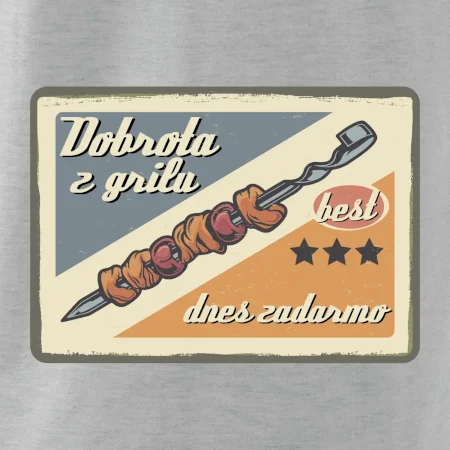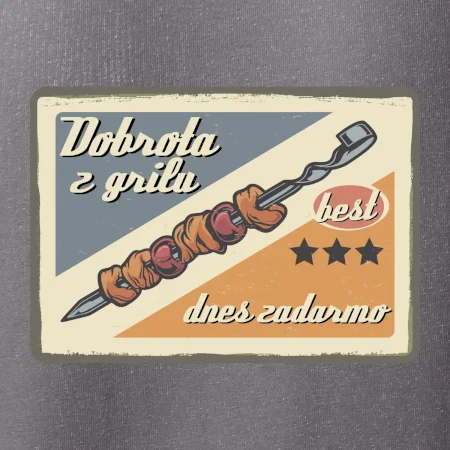 Tričko pre gurmána, ktorý má rád grilovanie, zdobí nápis "Dobrota z grilu, dnes zadarmo" a grilovaný mäsový špíz. Tričko pre kuchára by si mal zaobstarať každý, kto je pravý pán grilu.! Tričko s grilom je vhodný darček pre kuchárov na letné grilovanie na záhrade.