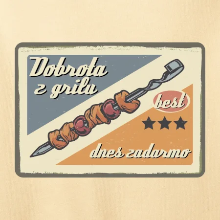 Tričko pre gurmána, ktorý má rád grilovanie, zdobí nápis "Dobrota z grilu, dnes zadarmo" a grilovaný mäsový špíz. Tričko pre kuchára by si mal zaobstarať každý, kto je pravý pán grilu.! Tričko s grilom je vhodný darček pre kuchárov na letné grilovanie na záhrade.