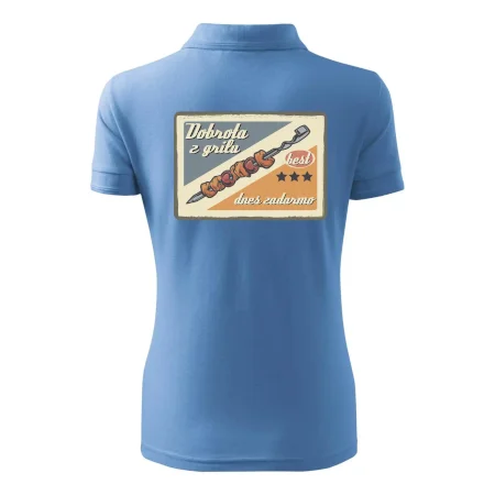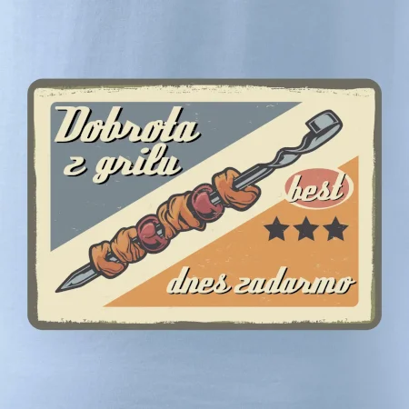 Tričko pre gurmána, ktorý má rád grilovanie, zdobí nápis "Dobrota z grilu, dnes zadarmo" a grilovaný mäsový špíz. Tričko pre kuchára by si mal zaobstarať každý, kto je pravý pán grilu.! Tričko s grilom je vhodný darček pre kuchárov na letné grilovanie na záhrade.