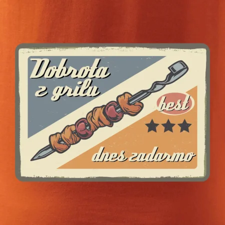 Tričko pre gurmána, ktorý má rád grilovanie, zdobí nápis "Dobrota z grilu, dnes zadarmo" a grilovaný mäsový špíz. Tričko pre kuchára by si mal zaobstarať každý, kto je pravý pán grilu.! Tričko s grilom je vhodný darček pre kuchárov na letné grilovanie na záhrade.