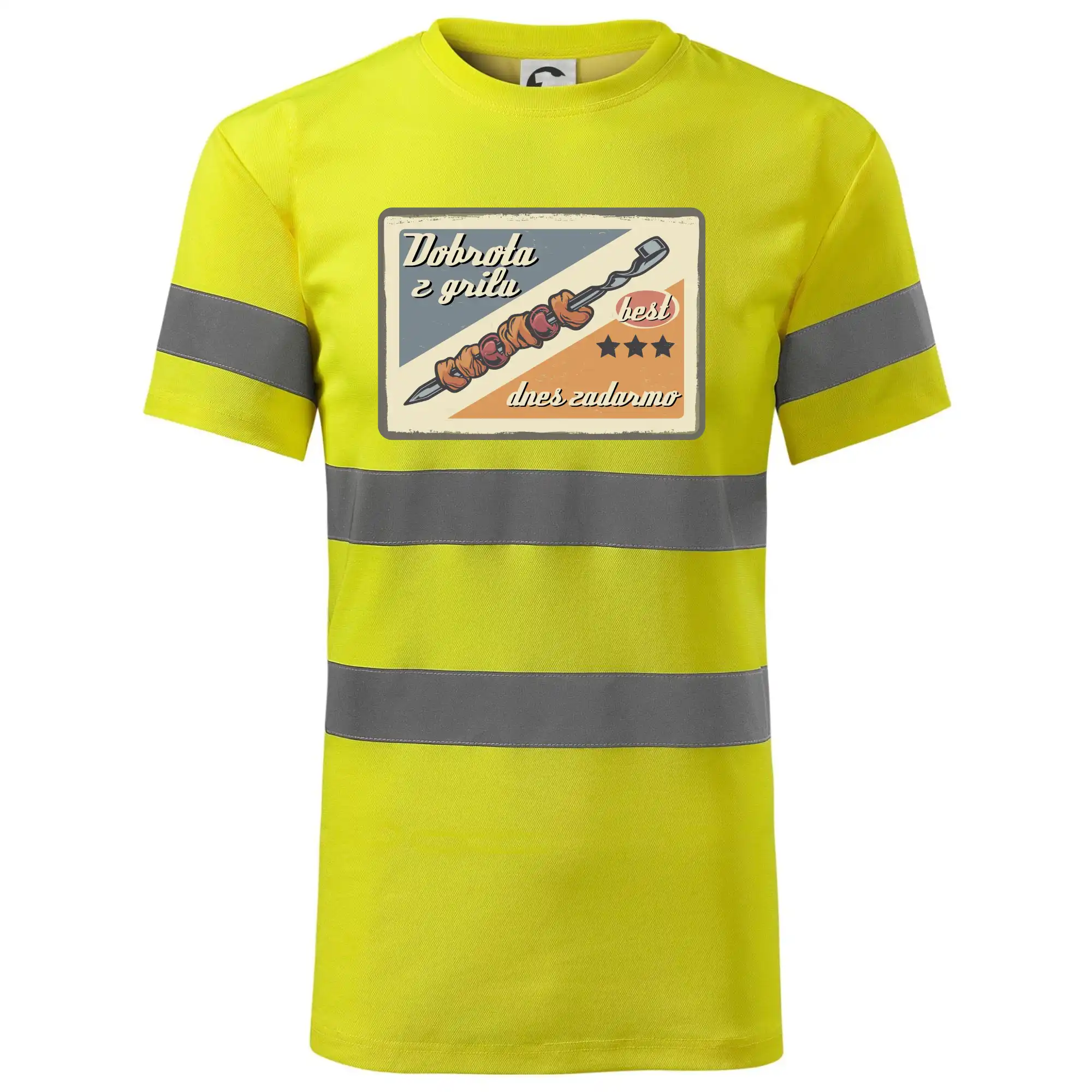 Tričko pre gurmána, ktorý má rád grilovanie, zdobí nápis "Dobrota z grilu, dnes zadarmo" a grilovaný mäsový špíz. Tričko pre kuchára by si mal zaobstarať každý, kto je pravý pán grilu.! Tričko s grilom je vhodný darček pre kuchárov na letné grilovanie na záhrade.