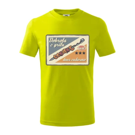 Tričko pre gurmána, ktorý má rád grilovanie, zdobí nápis "Dobrota z grilu, dnes zadarmo" a grilovaný mäsový špíz. Tričko pre kuchára by si mal zaobstarať každý, kto je pravý pán grilu.! Tričko s grilom je vhodný darček pre kuchárov na letné grilovanie na záhrade.