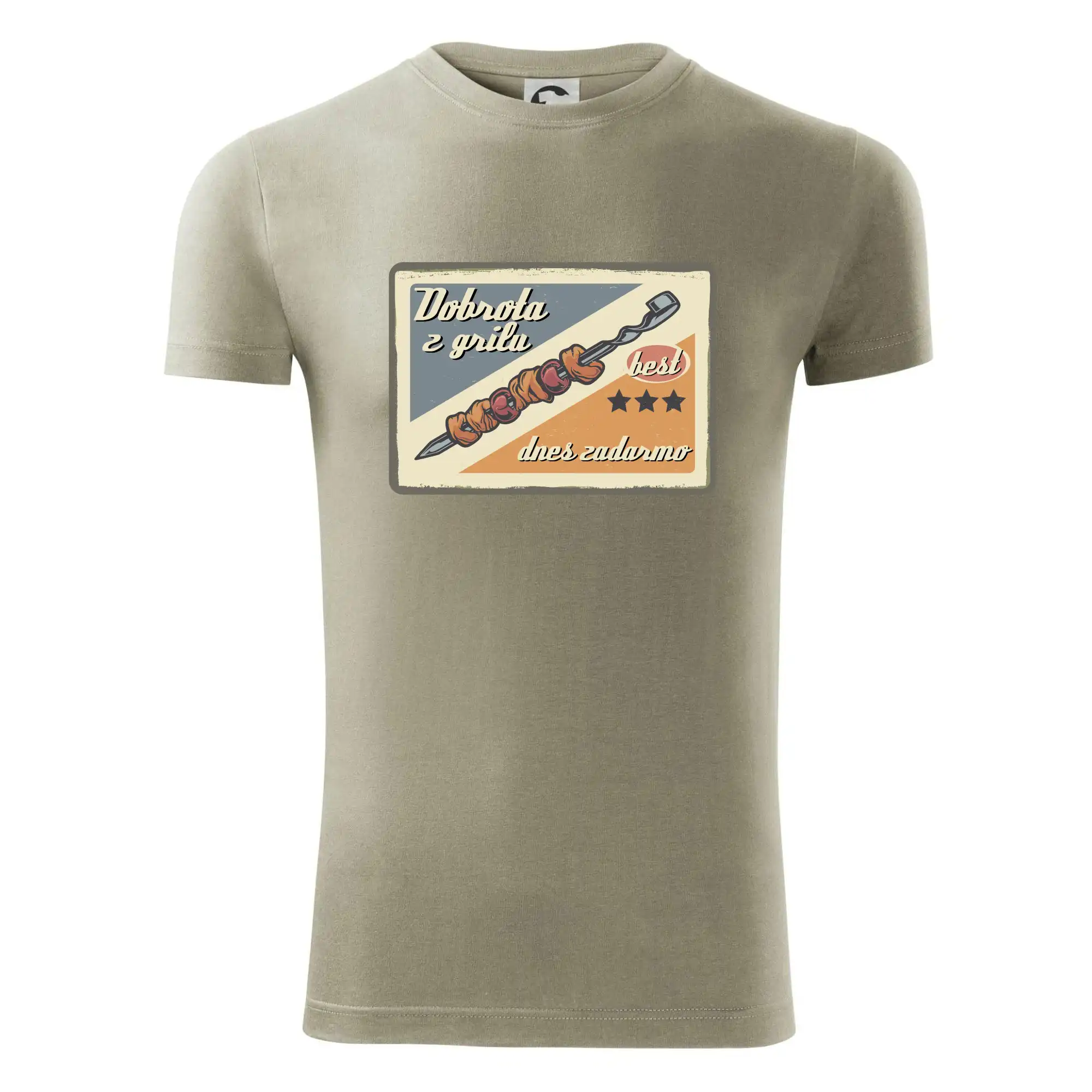Tričko pre gurmána, ktorý má rád grilovanie, zdobí nápis "Dobrota z grilu, dnes zadarmo" a grilovaný mäsový špíz. Tričko pre kuchára by si mal zaobstarať každý, kto je pravý pán grilu.! Tričko s grilom je vhodný darček pre kuchárov na letné grilovanie na záhrade.