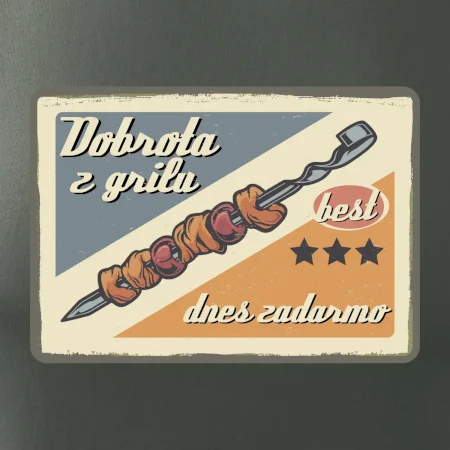 Tričko pre gurmána, ktorý má rád grilovanie, zdobí nápis "Dobrota z grilu, dnes zadarmo" a grilovaný mäsový špíz. Tričko pre kuchára by si mal zaobstarať každý, kto je pravý pán grilu.! Tričko s grilom je vhodný darček pre kuchárov na letné grilovanie na záhrade.
