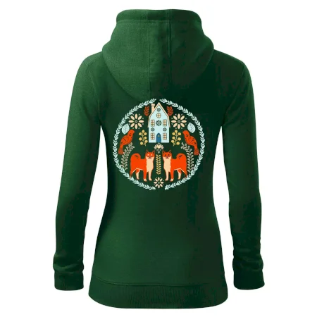 Dámska mikina MALFINI Trendy Zipper 411 spája moderný vzhľad s každodennou praktickosťou. Jej ľahko vypasovaný strih s bočnými švami zvýrazňuje ženskú siluetu, zatiaľ čo celoprepínací zips a kapucňa so sťahovacou šnúrkou dodávajú ležérny nádych.