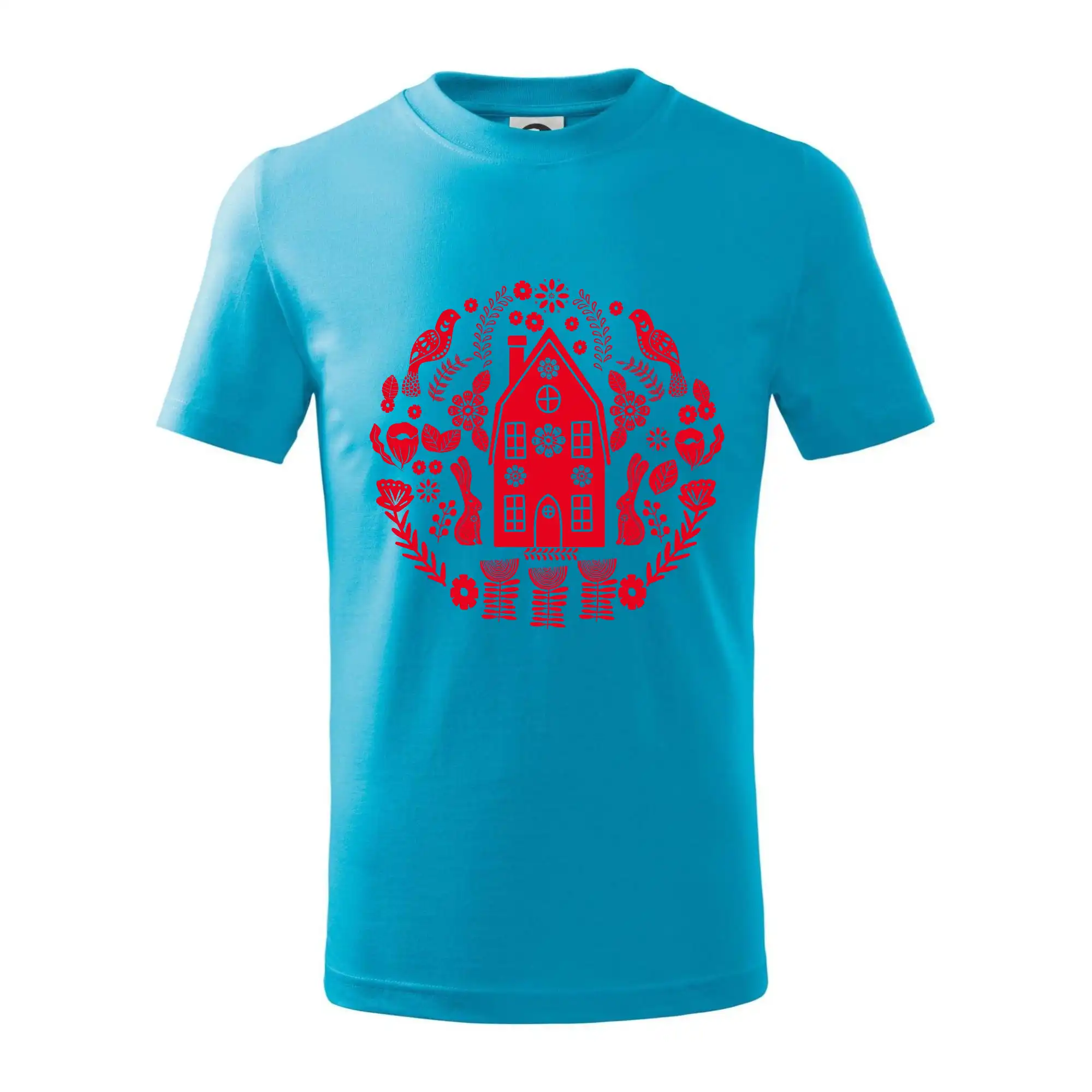 Detské tričko strednej gramáže s bočnými švami. Úzky priekrčník s prídavkom 5% elastanu. Vnútorná časť zadného priekrčníka začistená tkanou páskou. Spevnený ramenný šev.