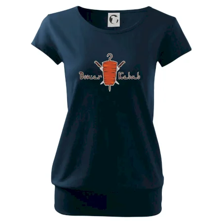Trendové dámske tričko s veľmi krátkym rukávom, voľnejšieho strihu, v dolnom kraji všité do širokého lemu. Okrúhly priekrčník s úzkym lemom zo zhodného materiálu.