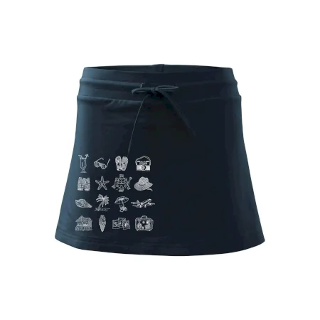 Dámska kraťasová sukňa MALFINI Two in One 604 je perfektnou kombináciou sukne a šortiek, ideálna na šport, voľný čas alebo ležérne nosenie. Vďaka prídavku elastanu si sukňa zachováva tvar a ponúka pohodlie pri pohybe. Krátky strih do tvaru „A“ a široký elastický pás so sťahovacou šnúrkou zabezpečujú voľnosť a prispôsobenie.