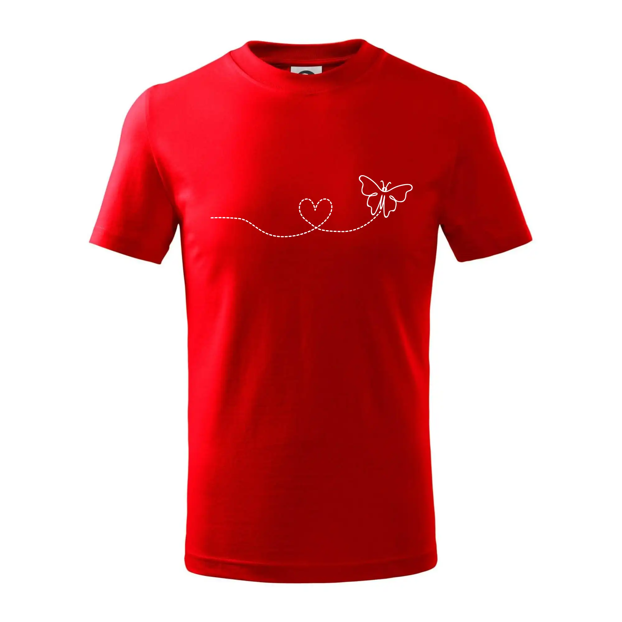 Detské tričko strednej gramáže s bočnými švami. Úzky priekrčník s prídavkom 5% elastanu. Vnútorná časť zadného priekrčníka začistená tkanou páskou. Spevnený ramenný šev.