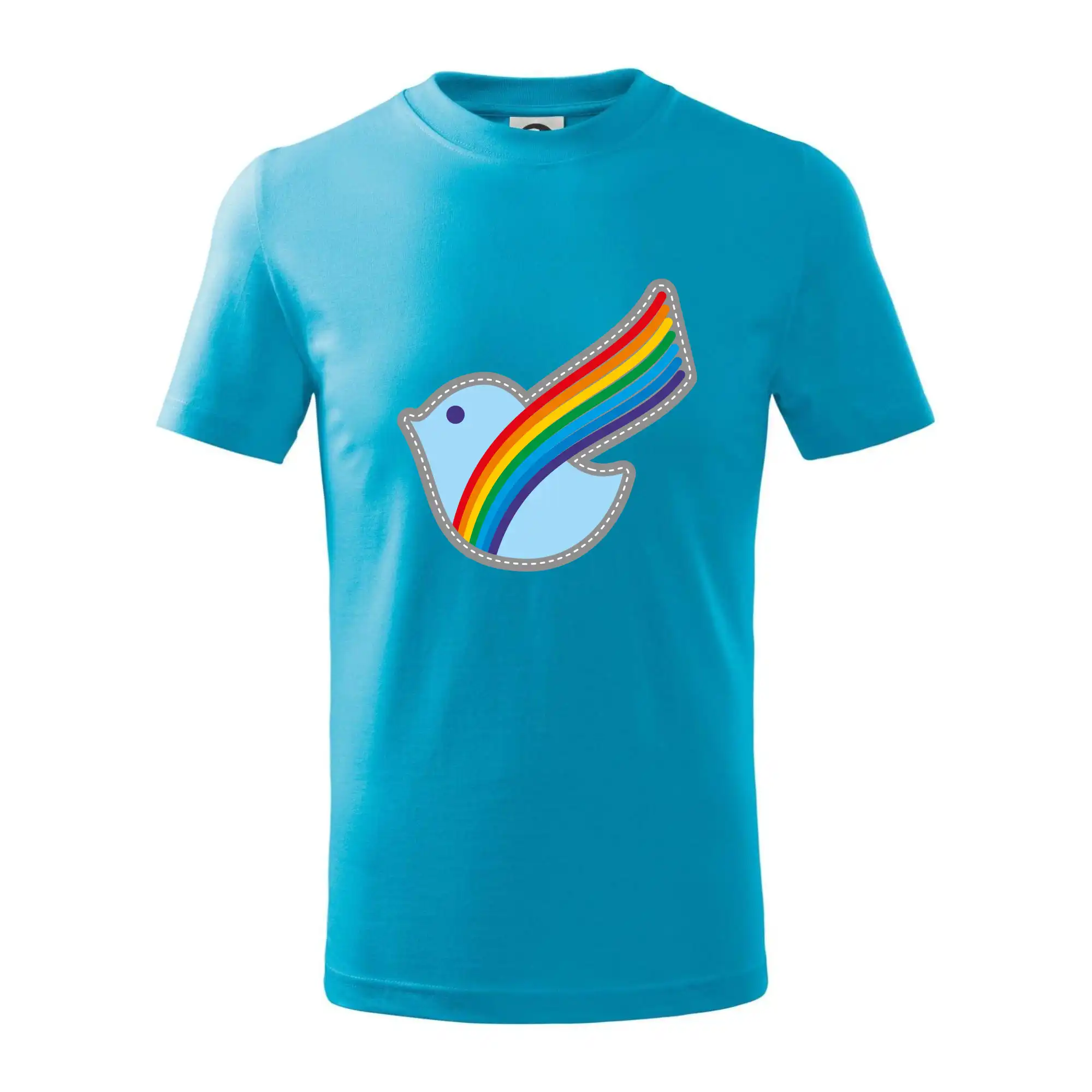 Detské tričko strednej gramáže s bočnými švami. Úzky priekrčník s prídavkom 5% elastanu. Vnútorná časť zadného priekrčníka začistená tkanou páskou. Spevnený ramenný šev.