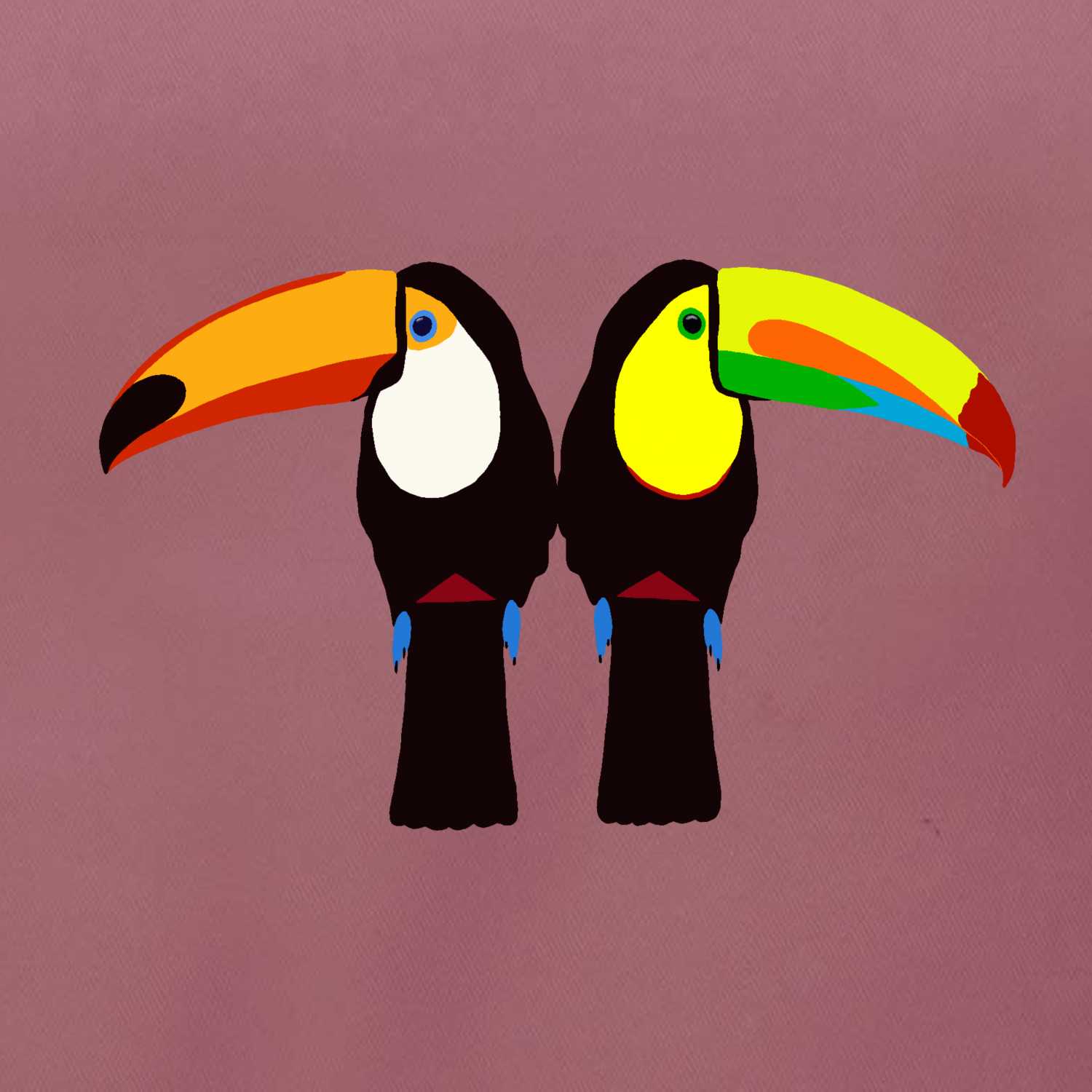Dva barevní tukani (Moňas)