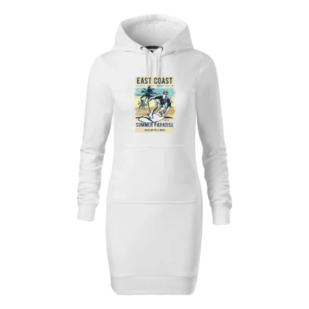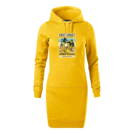 Dámske mikinové šaty MALFINI Snap 419 sú ideálnou voľbou pre ženy, ktoré hľadajú pohodlný a štýlový kúsok na voľný čas alebo každodenné nosenie. Ľahko vypasovaný strih s bočnými švami podčiarkuje ženskú siluetu, zatiaľ čo kapucňa s podšívkou a sťahovacou šnúrkou dodáva ležérny vzhľad. Šaty majú dĺžku nad kolená a sú vybavené našitým vreckom v štýle „klokanky“. Materiál je mäkký a príjemný na dotyk grâce à smesi bavlny a polyesteru s nepočesanou vnútornou stranou.