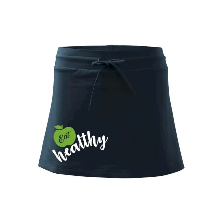 Dámska kraťasová sukňa MALFINI Two in One 604 je perfektnou kombináciou sukne a šortiek, ideálna na šport, voľný čas alebo ležérne nosenie. Vďaka prídavku elastanu si sukňa zachováva tvar a ponúka pohodlie pri pohybe. Krátky strih do tvaru „A“ a široký elastický pás so sťahovacou šnúrkou zabezpečujú voľnosť a prispôsobenie.