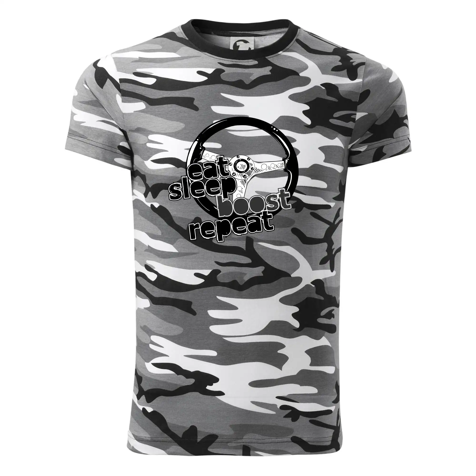Tričko pre vodiča s nápisom "Eat sleep Boost repeat". Toto tričko za volant by mal mať každý zapálený vodič.