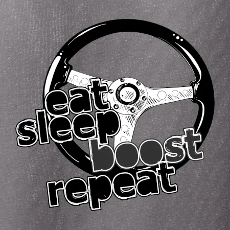 Tričko pre vodiča s nápisom "Eat sleep Boost repeat". Toto tričko za volant by mal mať každý zapálený vodič.