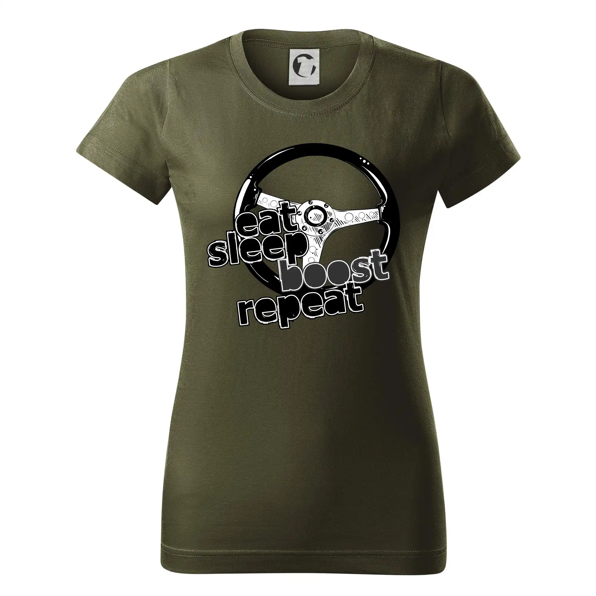 Tričko pre vodiča s nápisom "Eat sleep Boost repeat". Toto tričko za volant by mal mať každý zapálený vodič.