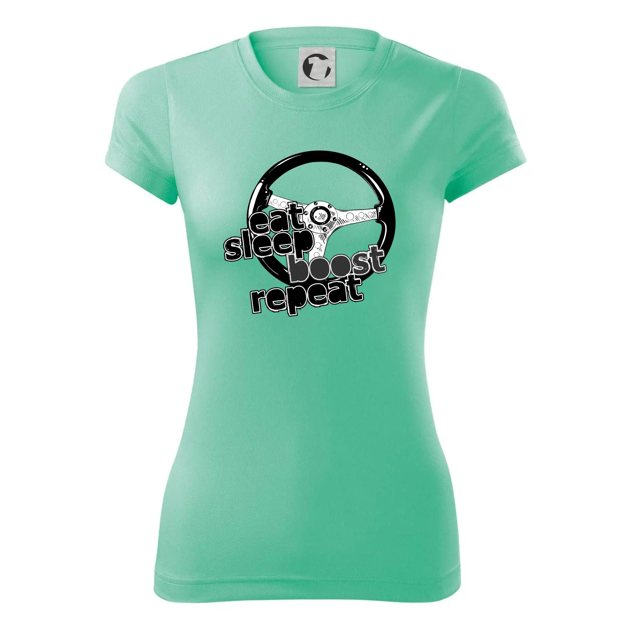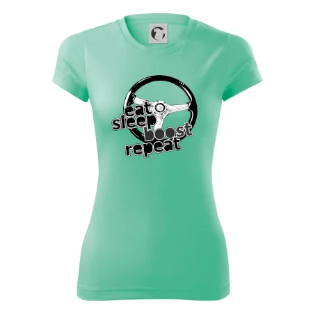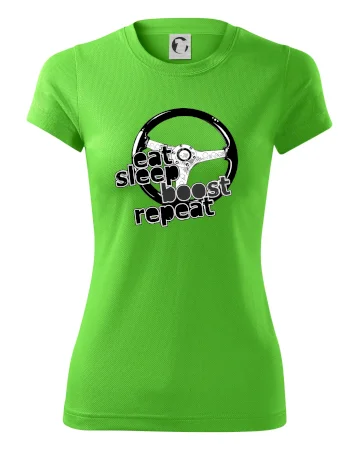 Tričko pre vodiča s nápisom "Eat sleep Boost repeat". Toto tričko za volant by mal mať každý zapálený vodič.