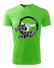Tričko pre vodiča s nápisom "Eat sleep Boost repeat". Toto tričko za volant by mal mať každý zapálený vodič.