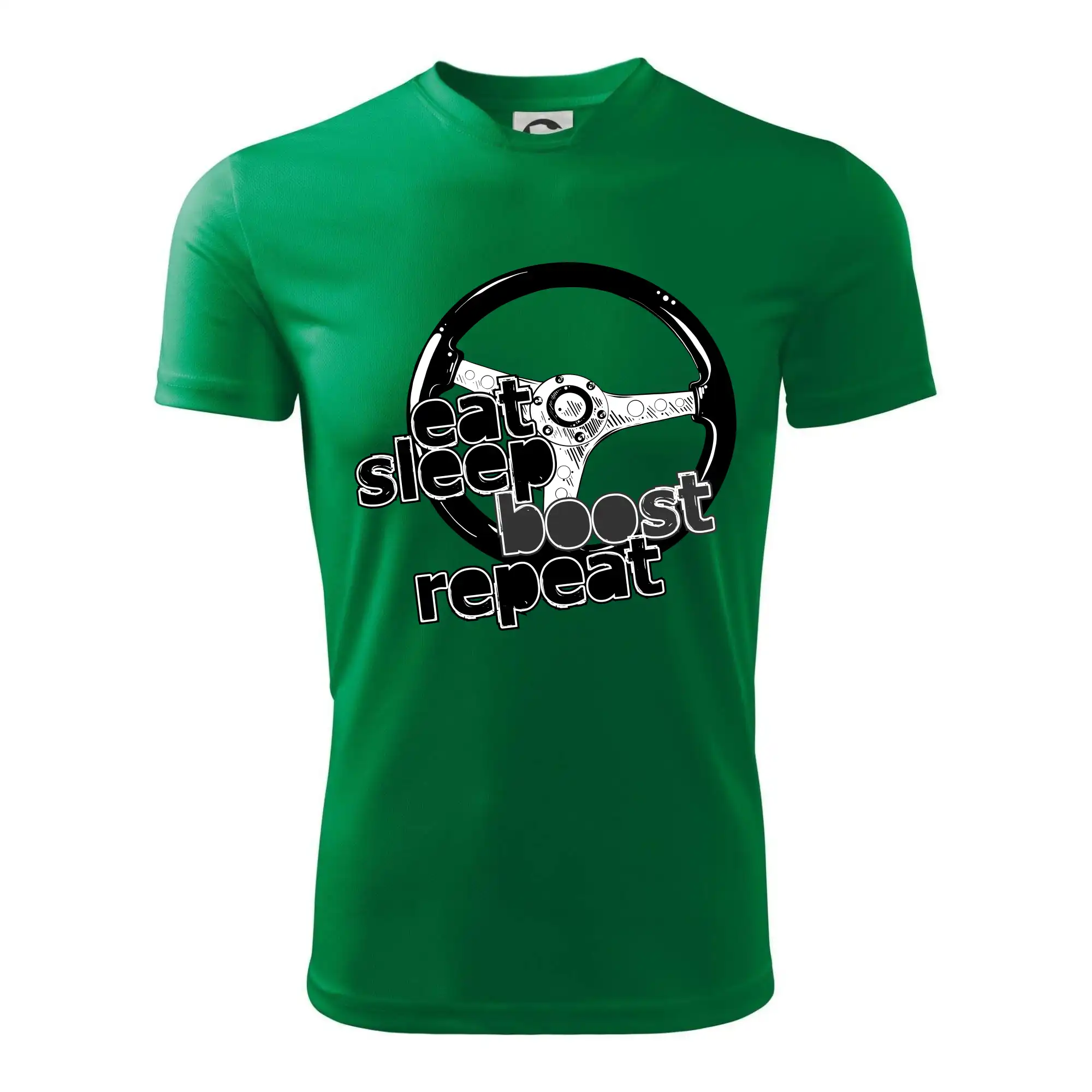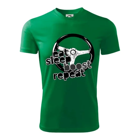 Tričko pre vodiča s nápisom "Eat sleep Boost repeat". Toto tričko za volant by mal mať každý zapálený vodič.