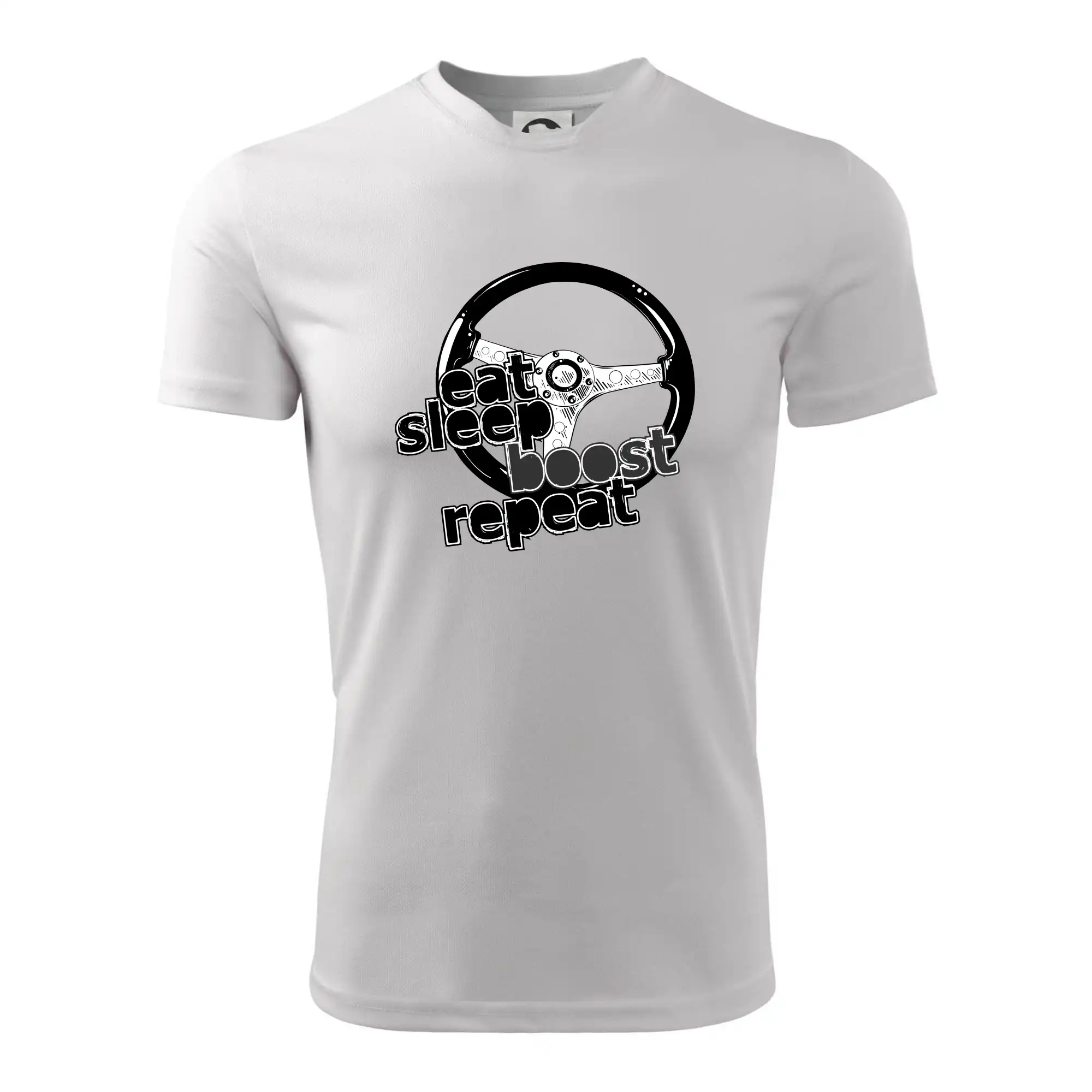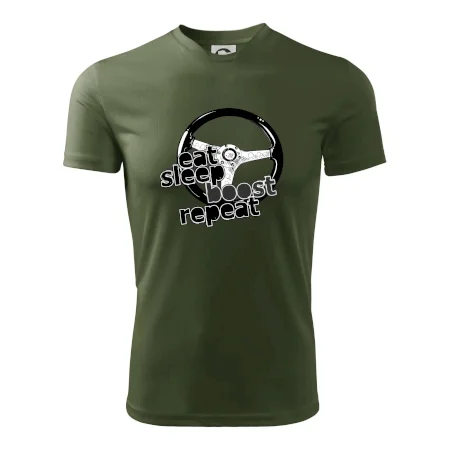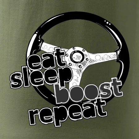 Tričko pre vodiča s nápisom "Eat sleep Boost repeat". Toto tričko za volant by mal mať každý zapálený vodič.