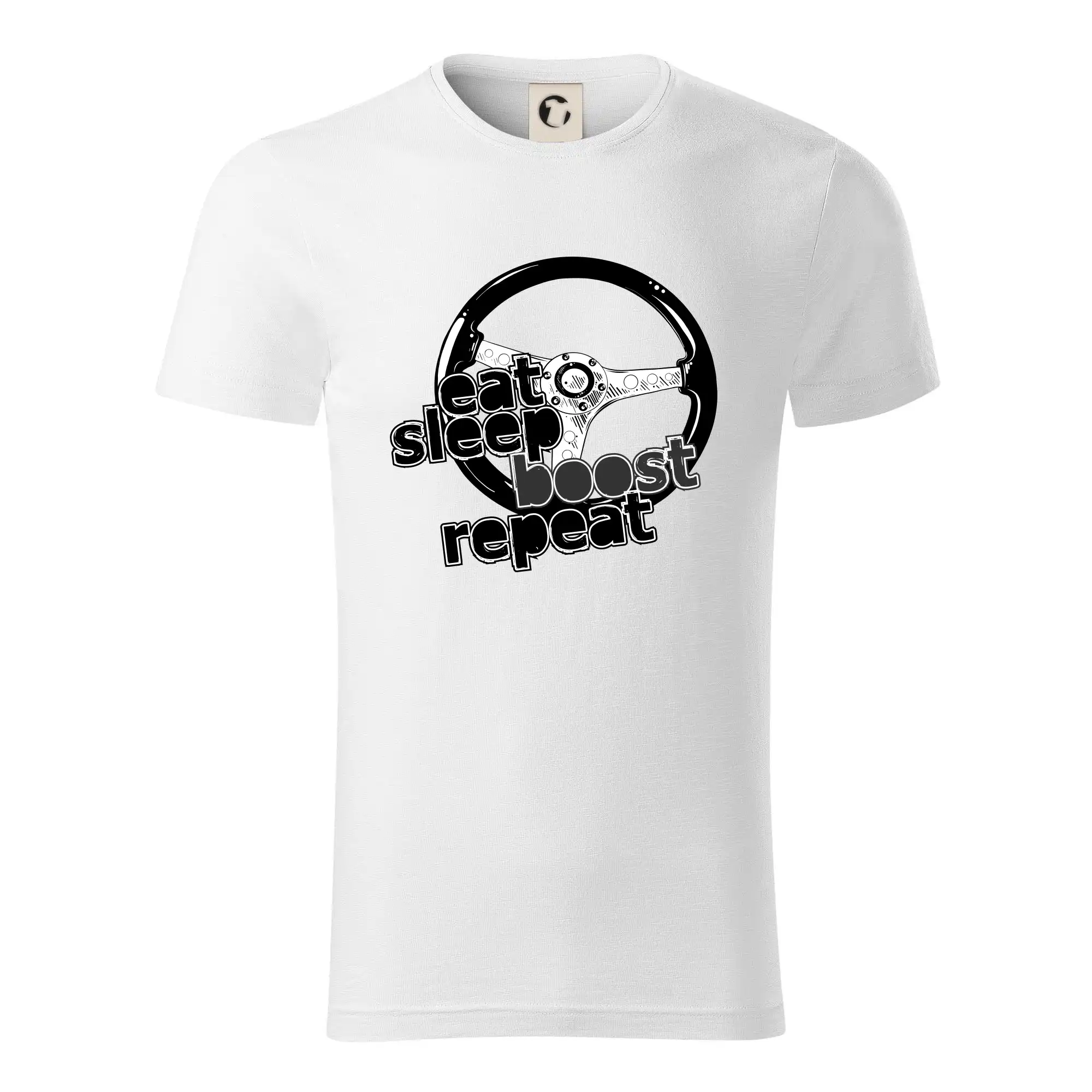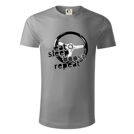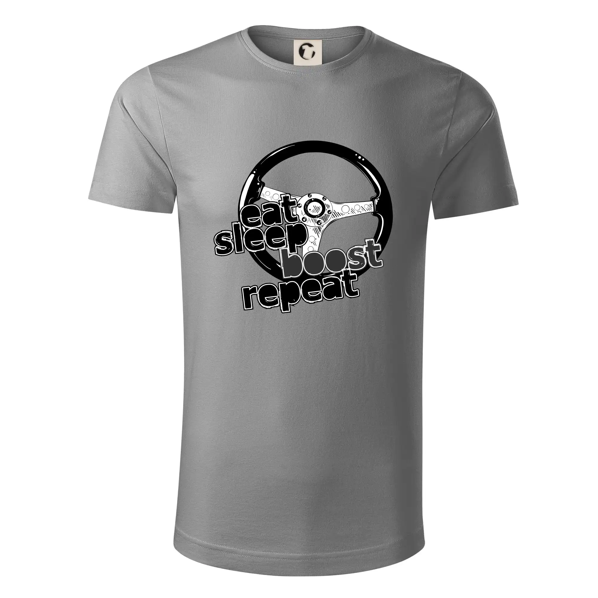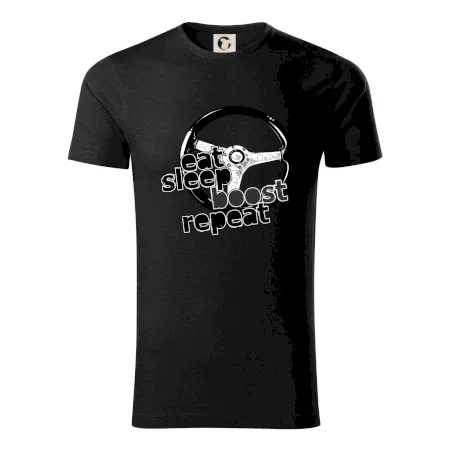 Tričko pre vodiča s nápisom "Eat sleep Boost repeat". Toto tričko za volant by mal mať každý zapálený vodič.